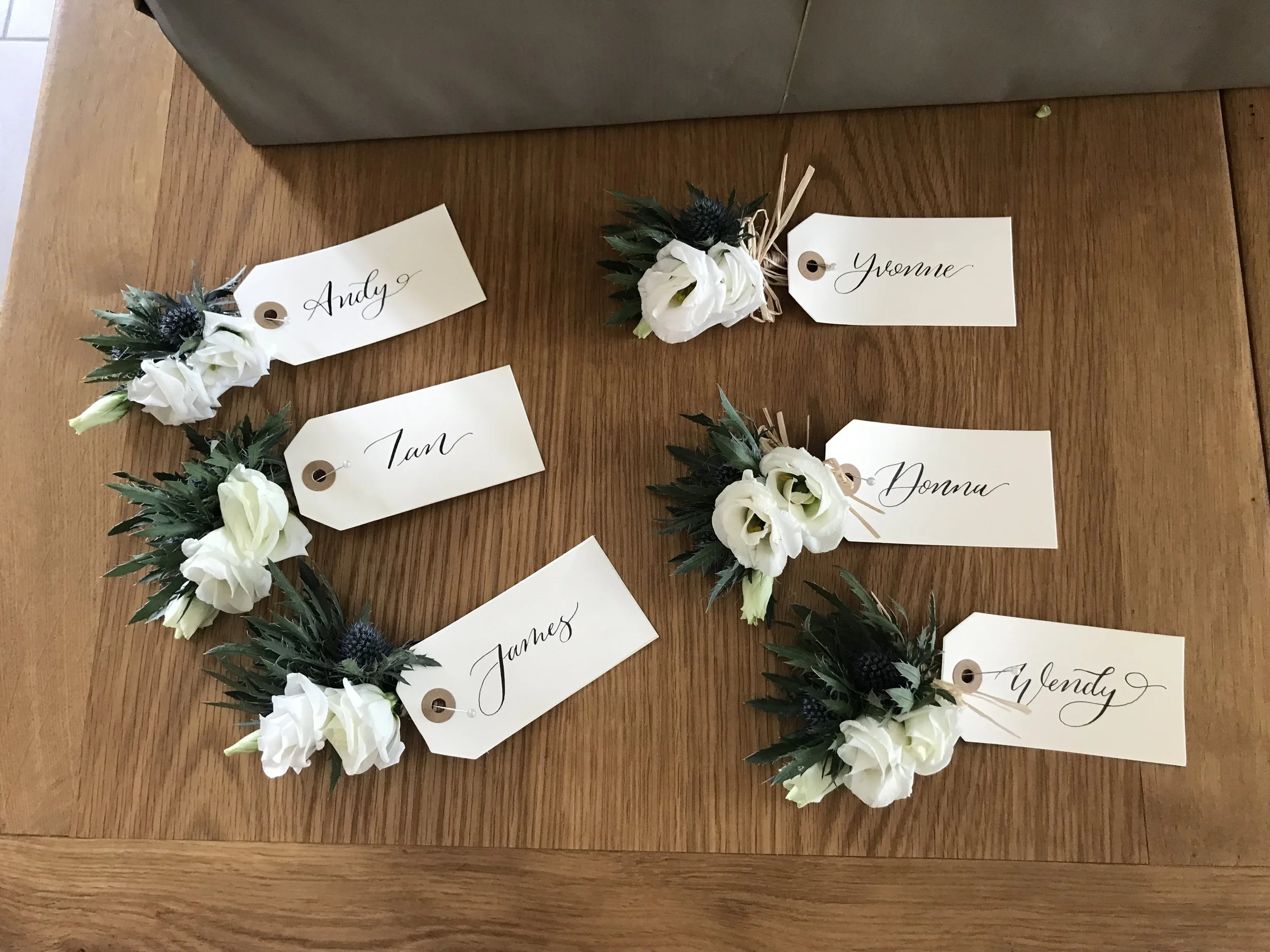 Pricing starts at £1.00 per place card (first names only on card). Pricing will vary depending on materials and ink colours requested.
