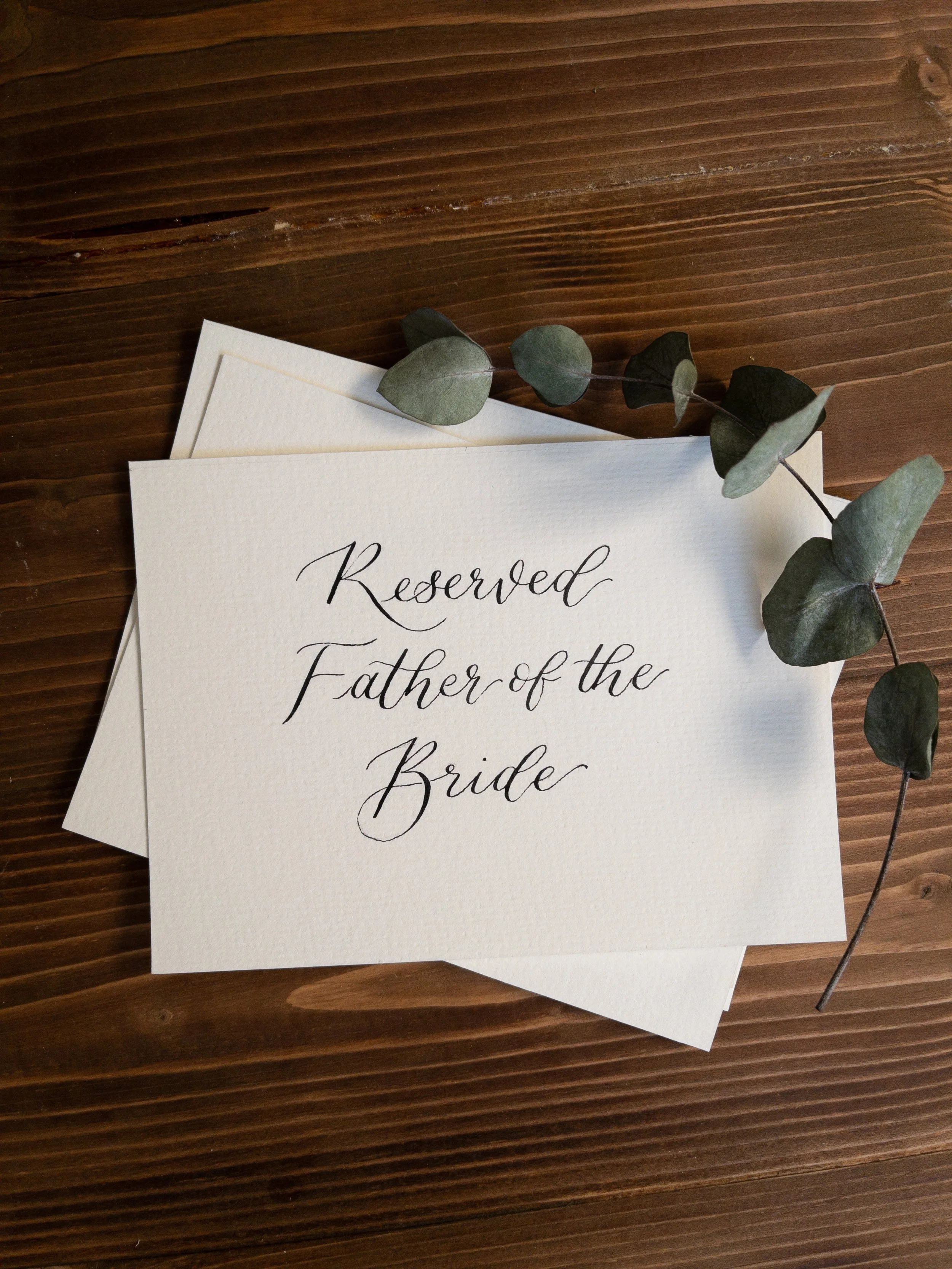 Pricing for calligraphy seat reservation cards starts at £3 per card. Prices vary depending on colours, design and materials.