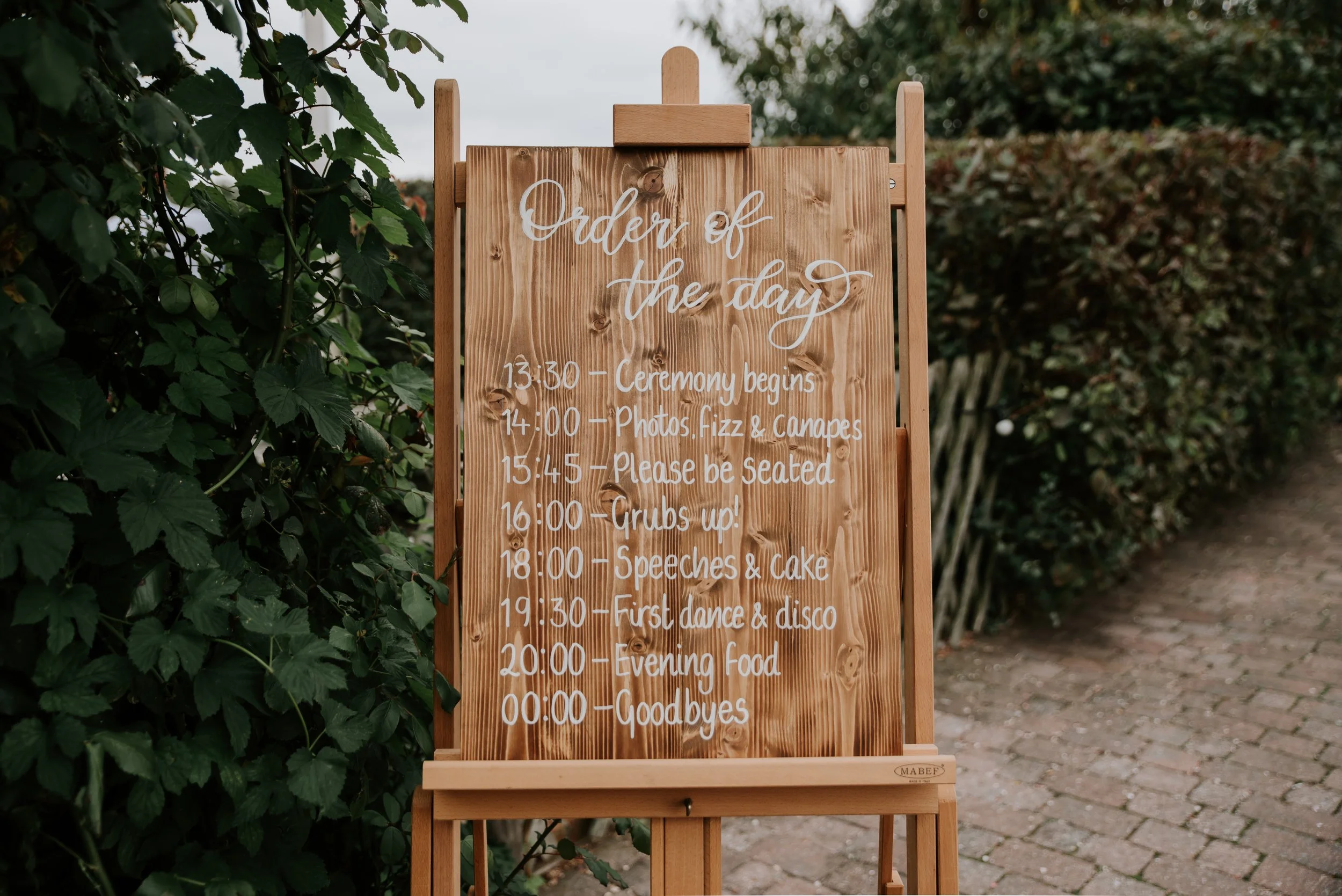 I offer a range of signage options with a pricing guide outlined below. A bespoke digital design proof included in the signage prices to ensure I capture every detail you want for your special day, before starting on your project.