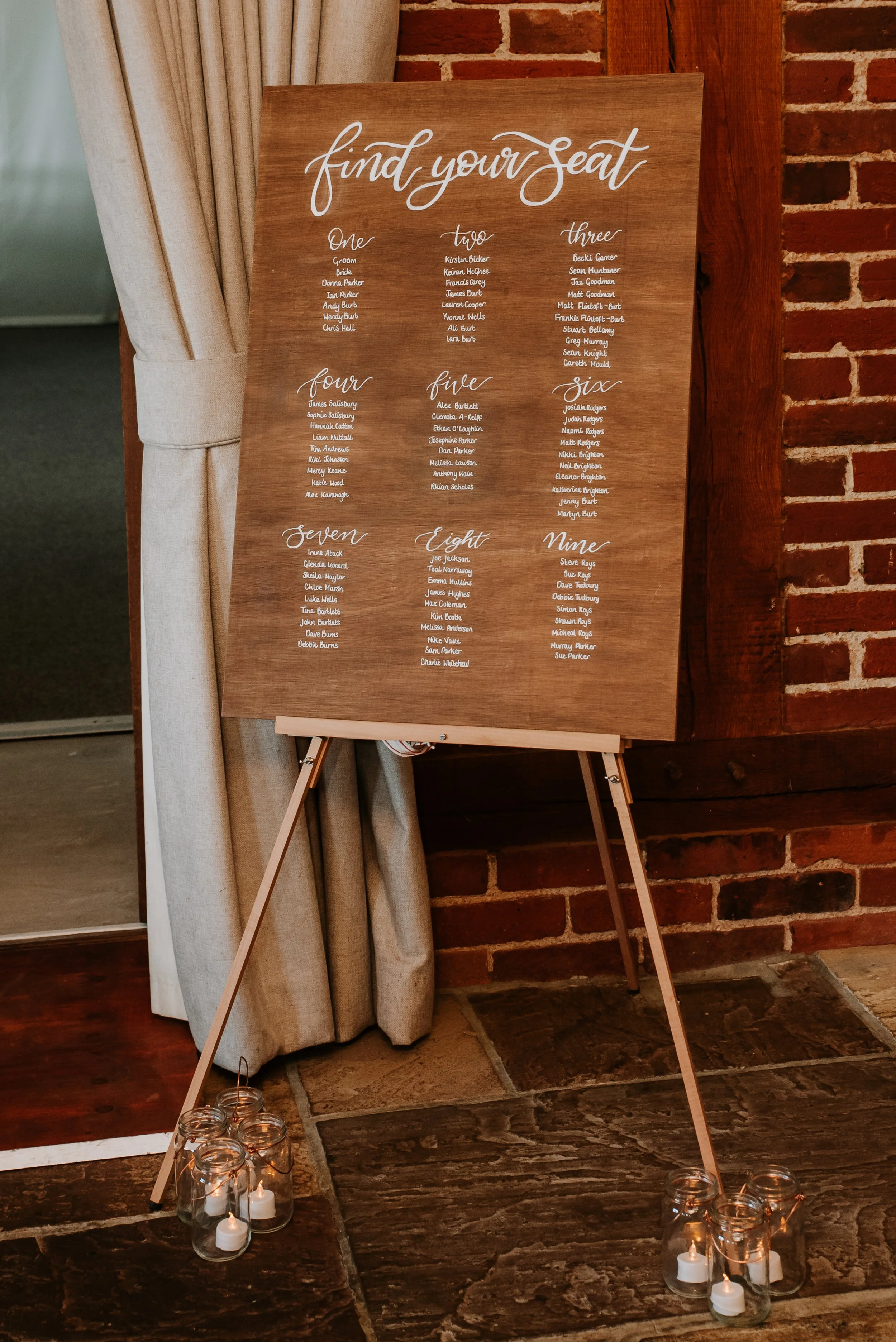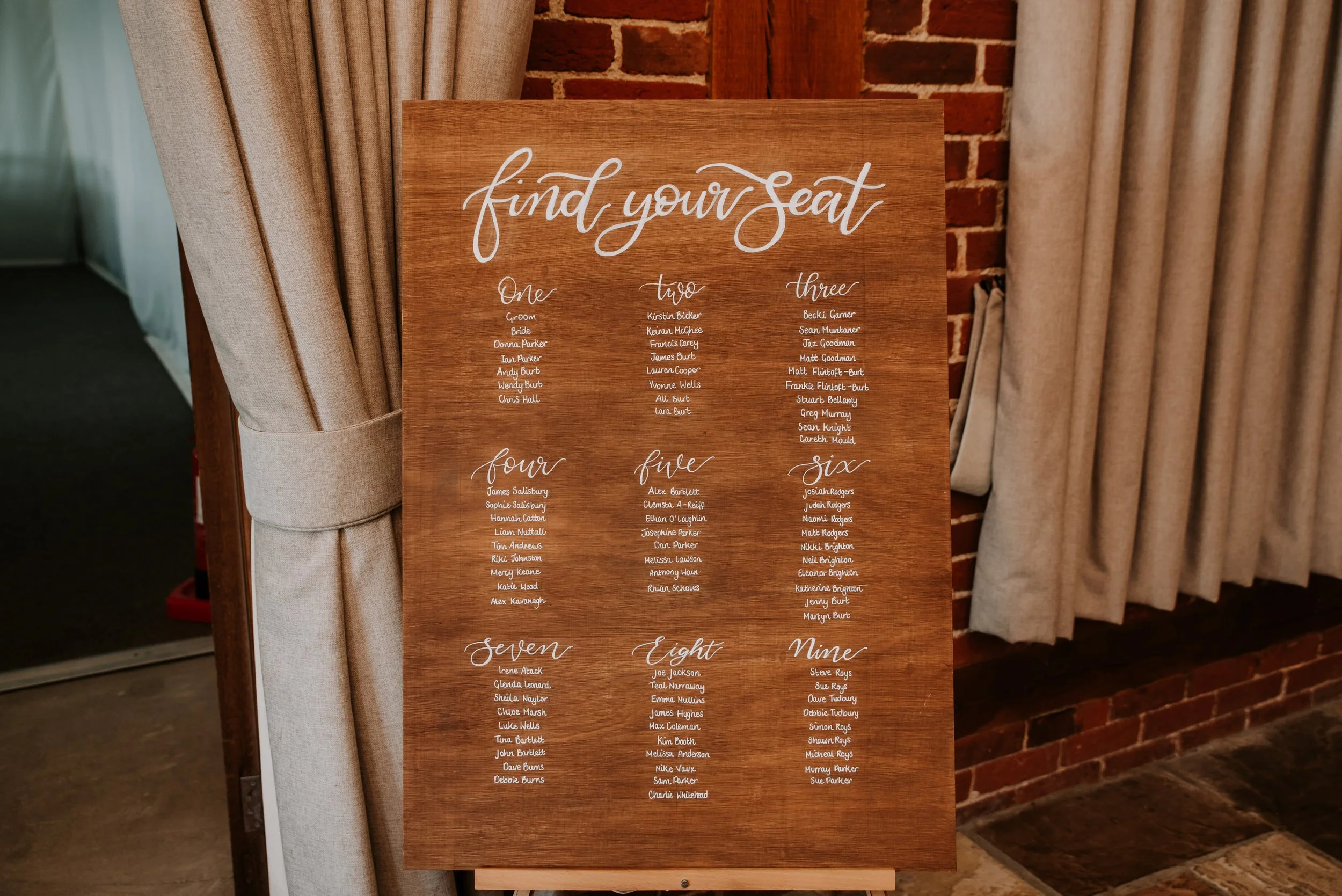 Pricing for handwritten calligraphy table numbers typically ranges from £12 per sign, depending on size, materials and complexity of design.